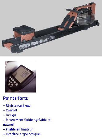 Le WaterRower Club est un rameur ergomètre avec affichage en Watts dont la résistance est assurée par un réservoir d’eau. Vous vous entraînez ainsi contre une résistance naturelle laquelle peut être ajustée en variant la quantité d’eau